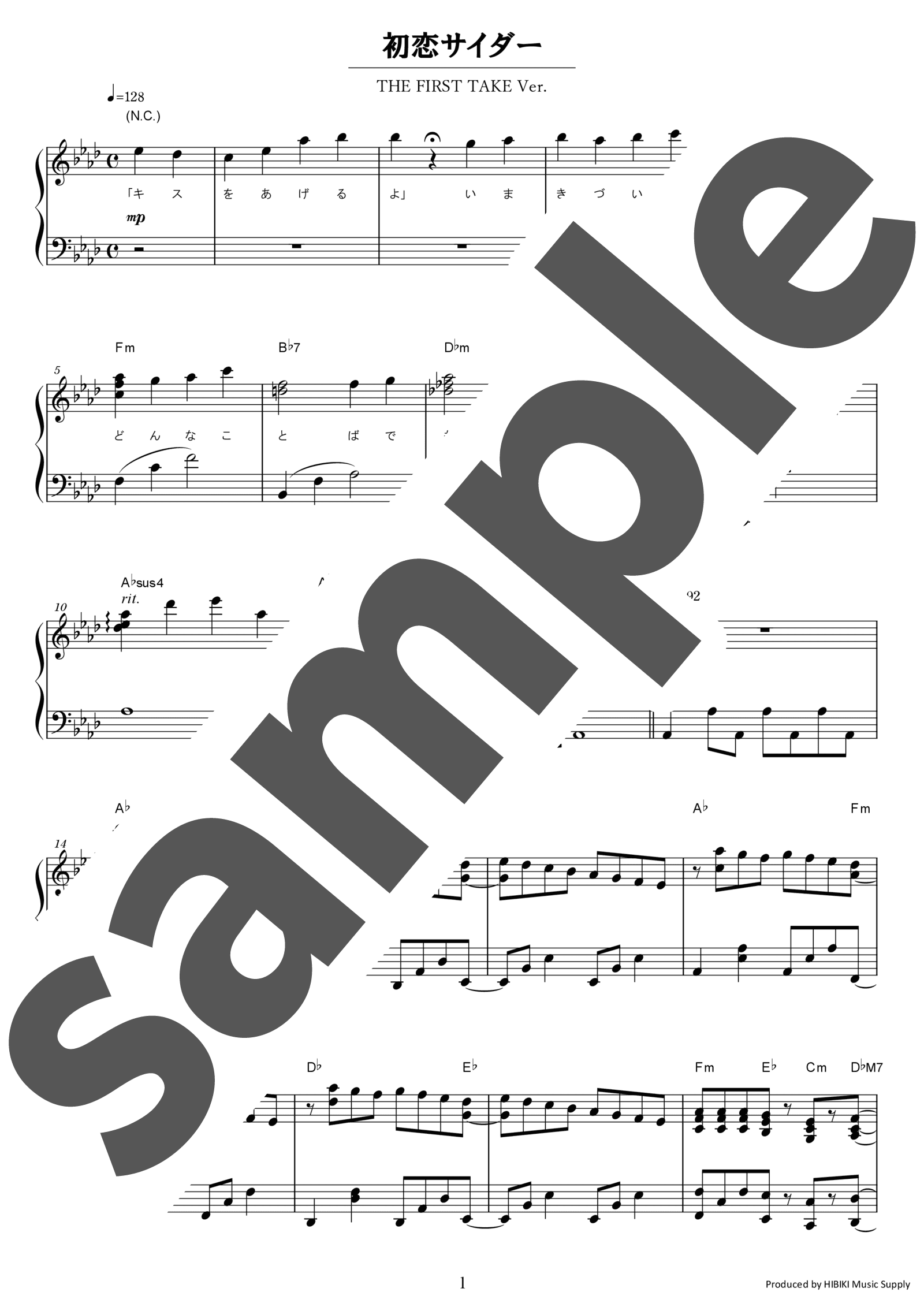 初恋サイダー(ピアノ弾き語り / 中級)