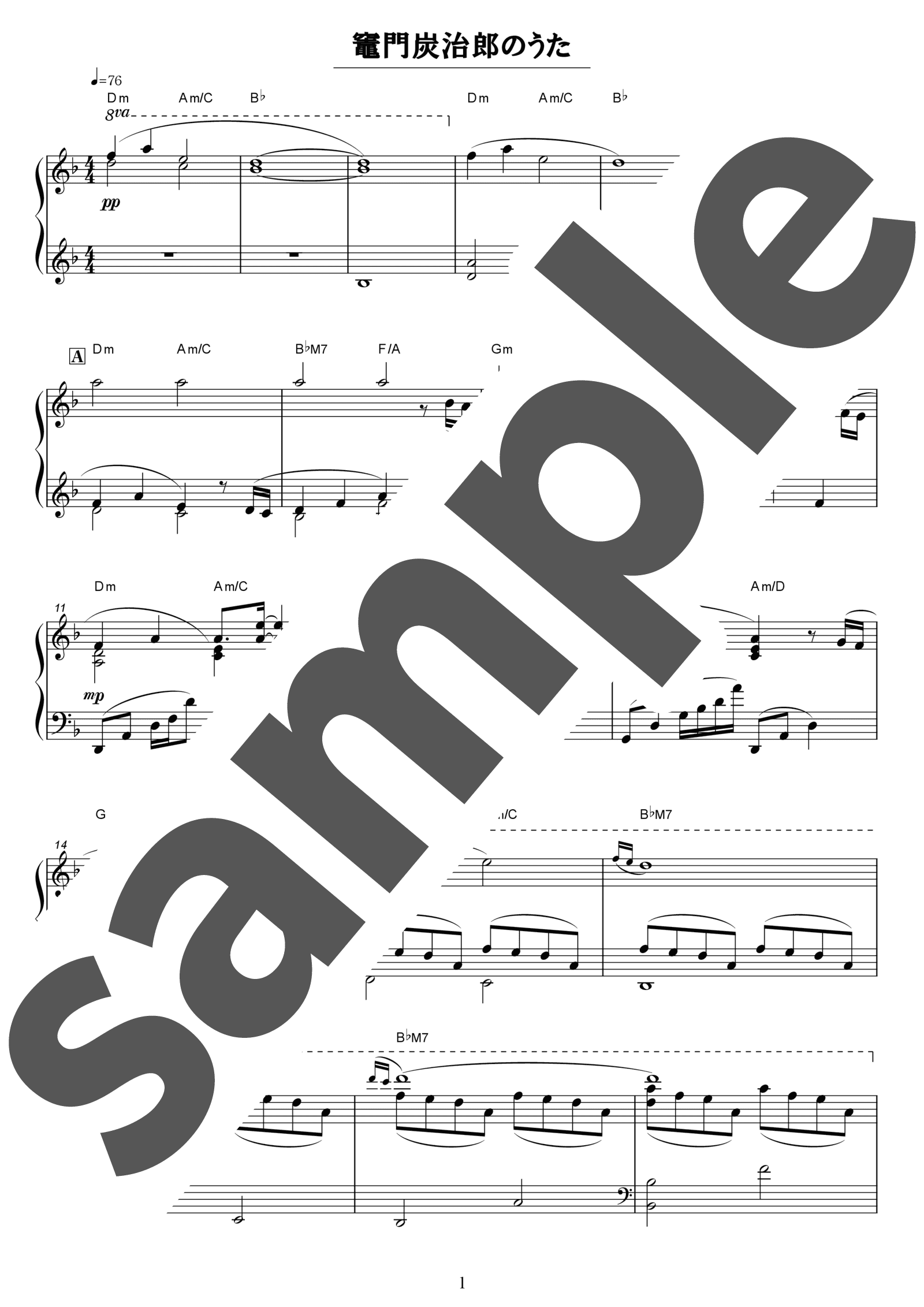 竈門禰豆子のうた(ピアノ・ソロ / 中上級)