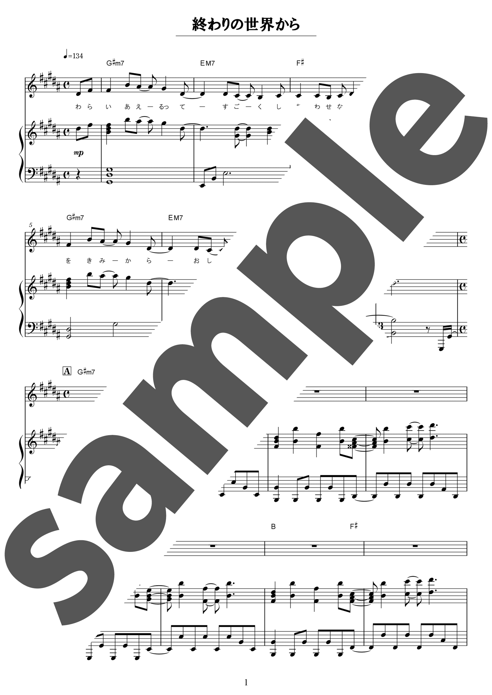 終わりの世界から(ピアノ・ソロ / 中級)